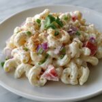 - Garnish and Serve: Before serving, sprinkle the macaroni salad lightly with paprika as a colorful garnish to enhance presentation and add a mild smoky flavor.