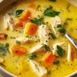 A soothing and health-boosting Anti-Inflammatory Turmeric Chicken Soup packed with aromatic spices, fresh vegetables, and tender chicken. This nourishing soup combines the anti-inflammatory benefits of turmeric and ginger with comforting ingredients, perfect for a wholesome meal that supports wellness.