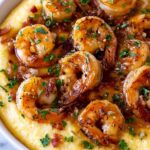 - Serve: Spoon the shrimp mixture generously over the warm cheesy grits. Garnish with sliced green onions and enjoy!