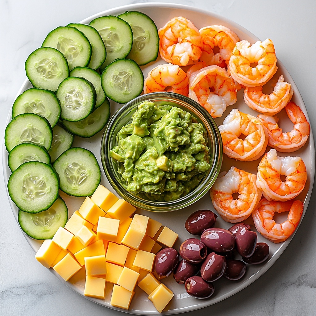 The magic of the Avocado Shrimp Keto Lunchbox Idea Recipe lies in its simplicity. Each ingredient plays a crucial role: the cucumbers add a refreshing crunch, the shrimp provide protein-packed sweetness, and the guacamole brings creamy richness. Together with cheese and olives, they create a perfectly balanced keto lunch experience.