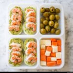 - Add Sides: Place the cheese cubes and olives into the lunchbox compartments alongside the shrimp cucumber bites.