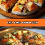 This Baked Salmon Sushi recipe offers a delightful twist on traditional sushi by combining tender, thinly sliced baked salmon with classic sushi rice and nori sheets. Enhanced with a creamy, slightly spicy mayo-based sauce, this dish is garnished with toasted sesame seeds and served with pickled ginger and soy sauce for an authentic sushi experience at home.