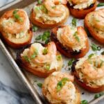 Spread the shrimp and cream cheese mixture evenly and generously over each toasted baguette slice. This step invites you to get generous because the flavor and texture depend on a good, even layer. Don’t be shy — every bite should taste like seafood heaven.