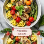 This Basil Pesto Chicken with Tortellini, Asparagus, and Cherry Tomatoes is a vibrant and flavorful dish combining tender, seasoned chicken breasts with cheesy tortellini and fresh vegetables. Tossed in aromatic basil pesto and finished with grated Parmesan, this one-pan meal offers a perfect balance of protein, veggies, and carbs for a satisfying dinner.