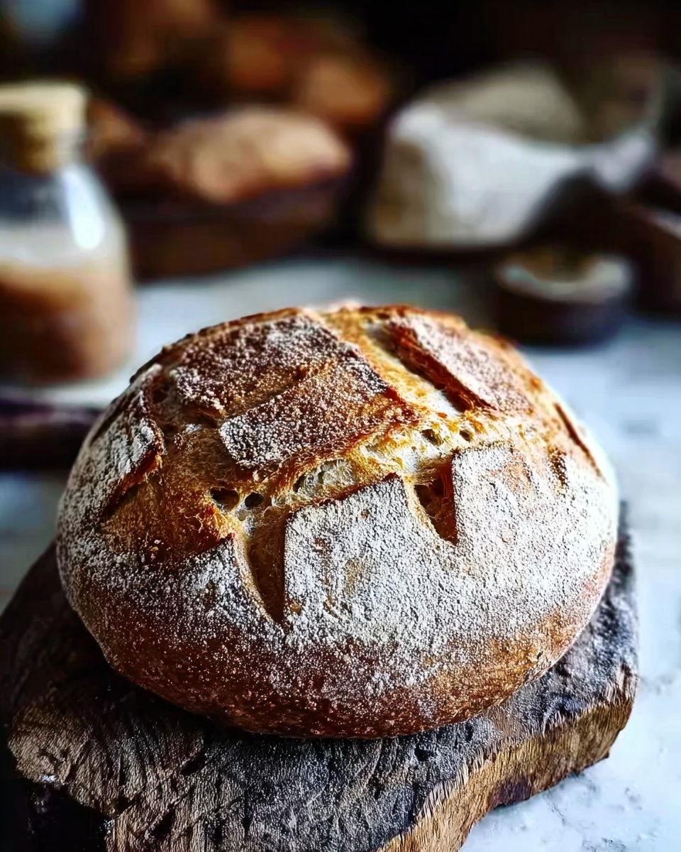 If you want to save this rustic loaf for later, slice it first and freeze the slices in an airtight container or freezer bag. That way you can pull out just what you need without thawing the whole loaf, preserving its wonderful texture and flavor.
