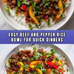 A quick and flavorful Beef and Pepper Rice Bowl featuring savory ground beef sautéed with colorful bell peppers and onions, tossed in a delicious Asian-inspired sauce, and served over a bed of warm rice. Perfect for a satisfying weeknight dinner.