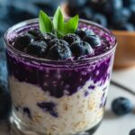 This Blueberry Cheesecake Overnight Oats recipe combines creamy Greek yogurt, tangy cream cheese, and sweet blueberries for a delicious and healthy breakfast that can be prepared the night before. Perfect for a quick meal with the flavors of a classic cheesecake without the baking.
