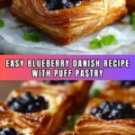 This Blueberry Danish recipe features flaky puff pastry filled with a luscious cream cheese mixture and sweet blueberry compote. Perfect for breakfast or dessert, these easy-to-make Danishes combine the tartness of fresh blueberries with creamy sweetness wrapped in golden, buttery pastry.
