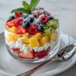 A refreshing and vibrant Breakfast Fruit Salad combining a variety of fresh seasonal fruits dressed with a light honey-lime dressing and garnished with fresh mint. This quick and easy no-cook recipe is perfect for a healthy vegan breakfast or snack.