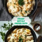 This creamy and flavorful Buffalo Chicken Alfredo Penne combines tender chicken pieces coated in spicy buffalo sauce with rich Alfredo sauce and perfectly cooked penne pasta. Topped with melted mozzarella, Parmesan, and optional blue cheese crumbles, this dish delivers the perfect balance of heat and creaminess for a comforting, satisfying meal.