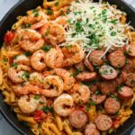 - Combine Everything: Return the cooked shrimp and sausage to the skillet. Stir them into the creamy sauce and cook for another 3-4 minutes until everything is heated through and well coated with the sauce.