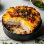Layer your turkey breast slices evenly over the bacon. This lean protein balances out the richer elements and adds a savory depth that keeps the meal hearty without being heavy.