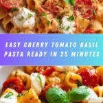 A quick and flavorful Cherry Tomato & Basil Pasta recipe featuring sautéed garlic and fresh cherry tomatoes tossed with pasta, finished with Parmesan cheese and fresh basil. Perfect for a light and satisfying meal ready in just 25 minutes.