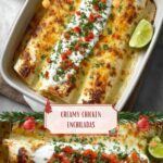 Delicious and creamy Chicken Enchiladas with a rich sour cream white sauce, filled with tender shredded chicken and Monterey Jack cheese, baked to golden perfection. This comforting Mexican-inspired dish features soft flour tortillas rolled with savory chicken and topped with a smooth, tangy sauce and melted cheese.