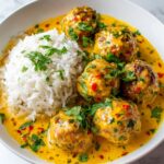 A flavorful and comforting Indian-inspired Chicken Meatball Curry made with tender ground chicken meatballs simmered in a rich, spiced coconut tomato sauce. Perfectly seasoned with garam masala, turmeric, and fresh cilantro, this curry is a delicious main course that pairs beautifully with rice or naan.