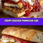 Delicious and hearty Chicken Parmesan Subs featuring crispy breaded chicken breasts topped with marinara sauce and melted mozzarella cheese, all nestled inside toasted sub rolls. This classic Italian-American sandwich is perfect for a satisfying main course.