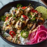 These Chicken Satay Rice Bowls are a flavorful and satisfying meal combining tender, marinated chicken thighs cooked to perfection with a rich peanut sauce, served over your choice of jasmine or brown rice, and topped with fresh, crunchy vegetables and herbs. Perfect for a quick weeknight dinner or a casual lunch that packs a punch of sweet, savory, and slightly spicy flavors.