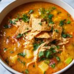 This Chicken Tortilla Soup is a flavorful and hearty Mexican-inspired recipe perfect for a cozy weeknight dinner. Loaded with tender shredded chicken, black beans, corn, and a blend of spices, it delivers a savory, comforting bowl topped with crispy tortilla strips and fresh avocado. The soup is gluten-free and easy to make on the stovetop, taking just 30 minutes from start to finish.