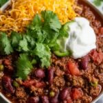 Garnishing your chili adds a fresh burst of flavor and texture. Fresh cilantro, sprinkled on top just before serving, adds an herbal brightness that complements the dish’s deep, spicy notes. You can also add a dollop of sour cream or shredded cheese to add creamy richness that balances the heat beautifully.