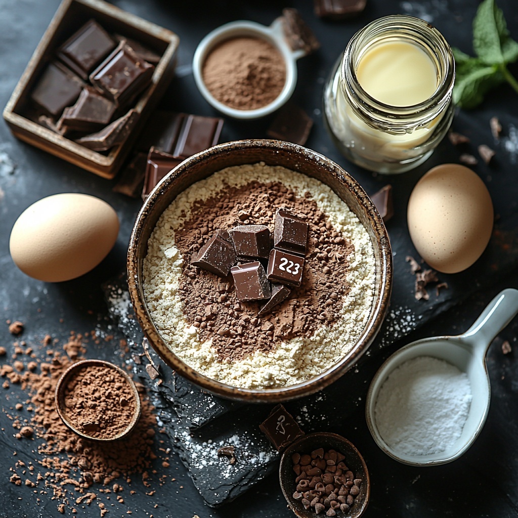 • Unsweetened cocoa powder (¾ cup): Packs in a deep, chocolate flavor and beautiful dark color.