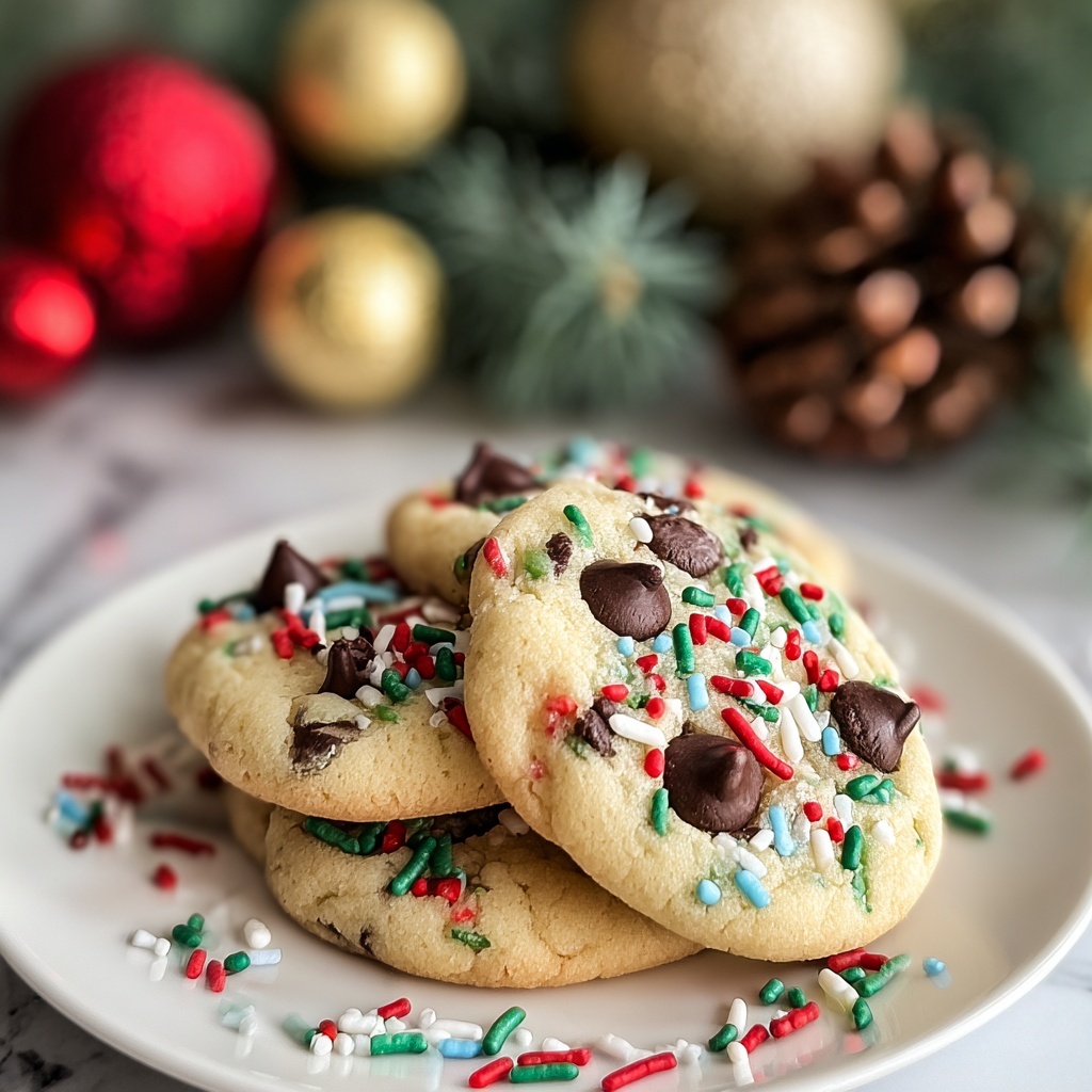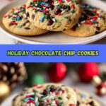 These Christmas Chocolate Chip Cookies are a festive twist on the classic treat, featuring crunchy holiday sprinkles and gooey chocolate chips baked into a soft, buttery cookie. Perfect for holiday gatherings or a cozy winter snack, these cookies combine rich flavors with a cheerful colorful presentation.