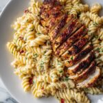 This dish stands perfectly on its own, but pairing it with a crisp green salad dressed with lemon vinaigrette adds a refreshing balance. Roasted vegetables like asparagus or broccoli also work beautifully, bringing texture and a slightly smoky flavor that contrasts the creamy pasta and savory chicken.