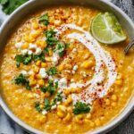 This Creamy Mexican Street Corn Soup combines the vibrant flavors of sweet corn, spicy jalapeño, and tangy lime with a rich, creamy texture. Inspired by the beloved Mexican street corn, this soup is a comforting and flavorful dish perfect for any season. It features sautéed onions and garlic, a lightly thickened broth with flour, and a finishing blend of heavy cream, sour cream, and cotija cheese, garnished with cilantro and lime wedges for an authentic taste experience.