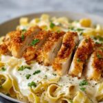 A delicious and comforting Crispy Chicken Fettuccine Alfredo featuring golden fried chicken cutlets served over creamy, garlicky Alfredo sauce tossed with tender fettuccine pasta. This recipe combines crunchy, flavorful chicken with rich, cheesy sauce for a satisfying dinner perfect for family meals or entertaining guests.