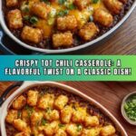 This Crispy Tot Chili Casserole is a comforting and delicious family-friendly dish featuring a flavorful chili base topped with crispy tater tots and melted cheddar cheese. Easy to prepare and perfect for a hearty weeknight dinner, it combines savory ground meat, beans, and spices baked to perfection for a satisfying meal.