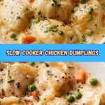A comforting and hearty Crockpot Chicken and Dumplings recipe featuring tender shredded chicken, fresh vegetables, and flaky biscuit dumplings slow-cooked to perfection in a creamy broth.