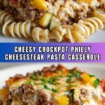 Enjoy a comforting and hearty Crockpot Philly Cheesesteak Pasta Casserole packed with savory ground beef, tender bell peppers and onions, creamy cheeses, and perfectly cooked pasta. This slow cooker dish is easy to prepare, making it the ideal weeknight meal that melts together all the classic Philly cheesesteak flavors in one cheesy casserole.