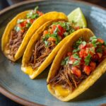 The real fun begins when assembling your tacos. Top the shredded beef with fresh cilantro for herby brightness and diced onion for crunch and bite. Creaminess from avocado or sour cream complements the spicy beef, while salsa and shredded cheese add layers of flavor and texture. Each topping invites you to customize your perfect taco experience.