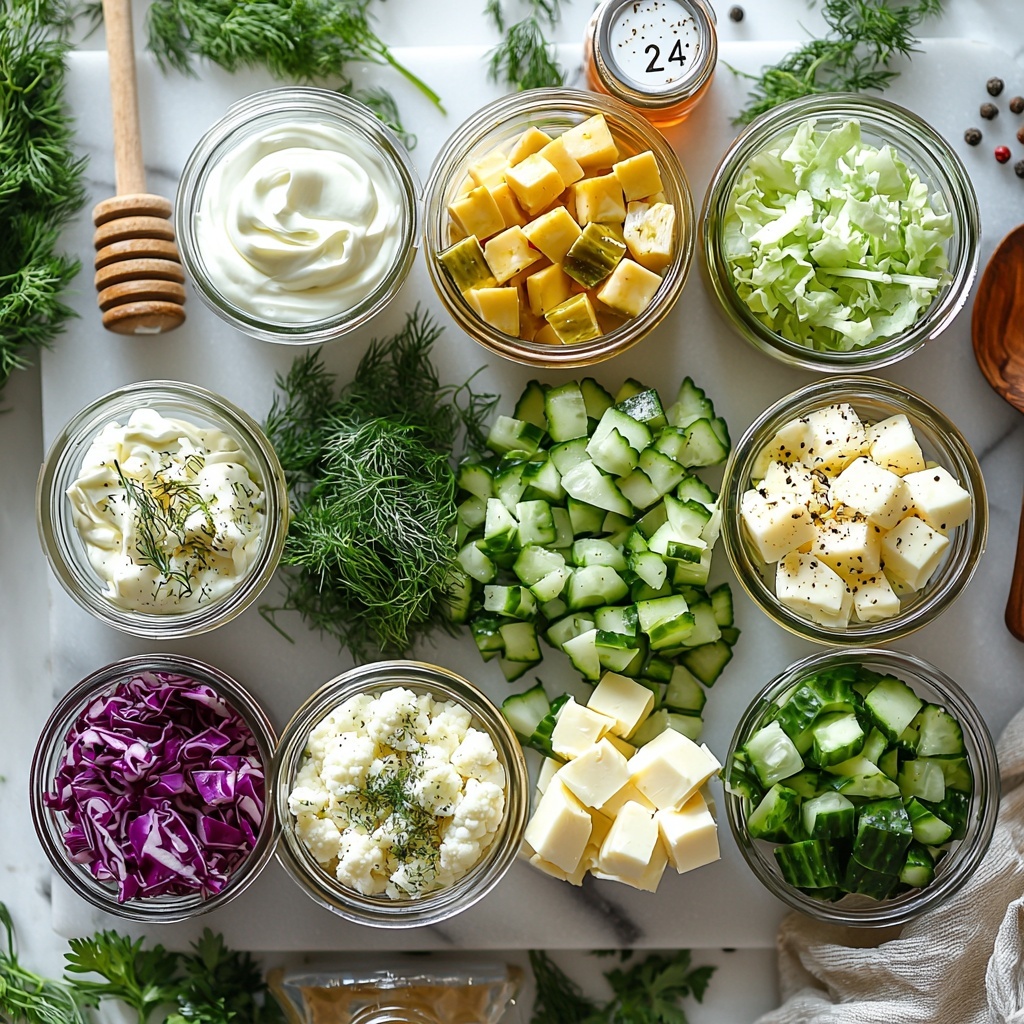 Here’s where simplicity shines bright. Each ingredient in this Dill Pickle Salad with Feta and Fresh Dill Dressing Recipe plays a crucial role — from crunchy textures to that punch of tang and creaminess — making this dish sing with flavor.