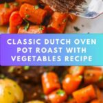 This Dutch Oven Pot Roast recipe delivers a tender, flavorful beef roast cooked low and slow with aromatic herbs, vegetables, and a rich red wine and beef broth sauce. Perfect for a comforting family meal, this pot roast is seared on the stovetop and then finished baking in the oven for several hours, resulting in melt-in-your-mouth meat and perfectly cooked carrots and potatoes.