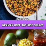 This Easy Mexican Beef and Rice Skillet recipe is a flavorful one-pot meal combining seasoned ground beef, fragrant white rice, savory salsa, and hearty beans and corn. Ready in under an hour, it’s a satisfying and simple dinner perfect for busy weeknights, delivering a comforting taste of Mexican-inspired cuisine.