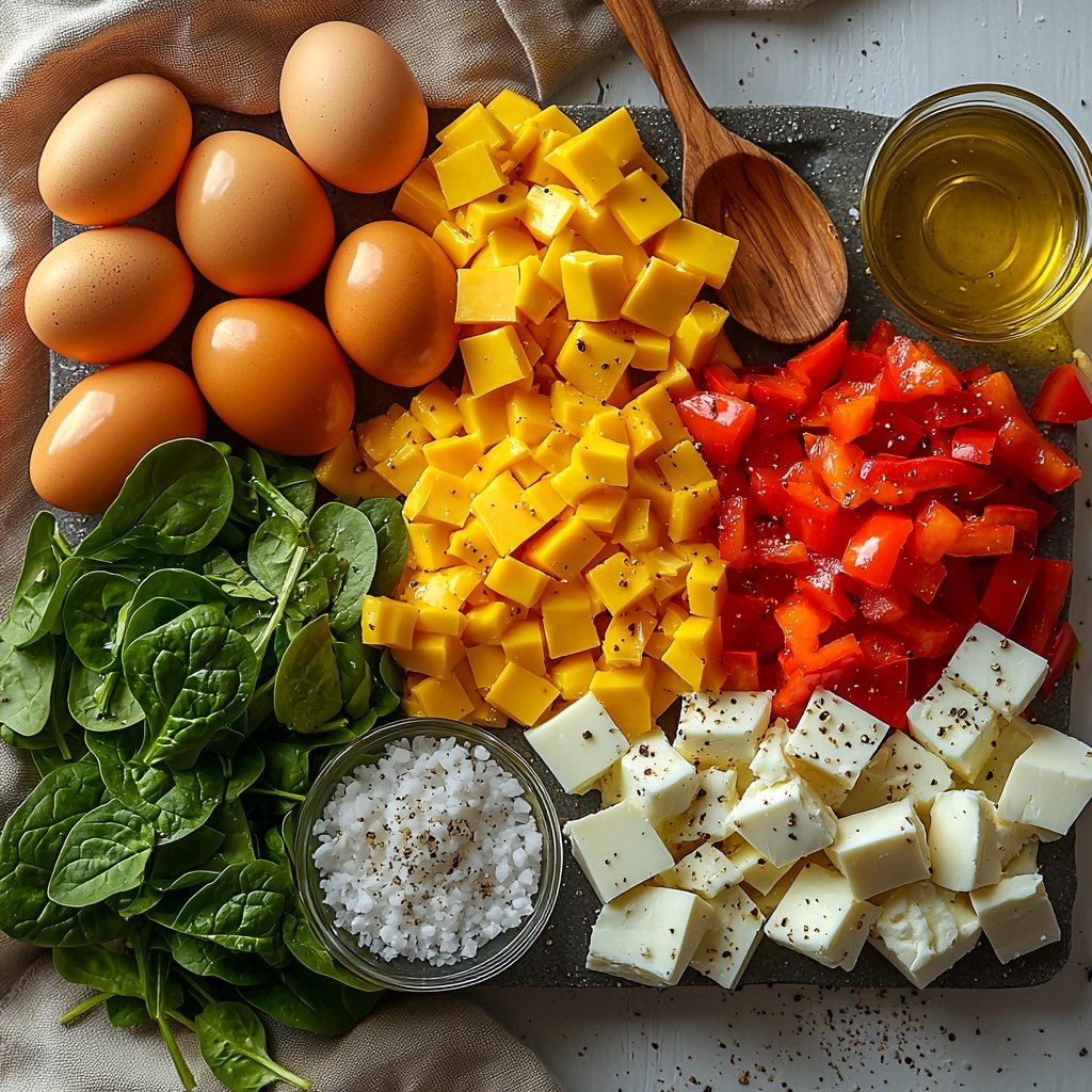 Gathering simple yet vibrant ingredients is the secret behind this dish’s irresistible taste and texture. Each component plays a key role—from the creamy eggs to the colorful bell peppers and nutrient-rich spinach, this recipe keeps things fresh and balanced.