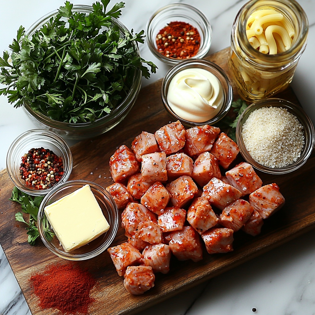 Gathering these simple yet essential ingredients is the first step towards creating this indulgent dish. Each component plays a key role in building the rich flavor profile and satisfying texture that make the Garlic Butter Chicken Bites & Cajun Alfredo Mac with Crispy Onion Topping Recipe so unforgettable.