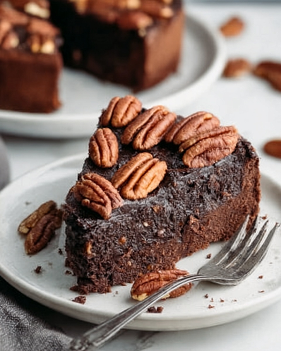 Simple garnishes like a light dusting of powdered sugar or a swirl of whipped cream elevate this cake to dessert-table royalty. You can even sprinkle extra chopped pecans on top to boost the nutty crunch and visual appeal. A drizzle of caramel sauce also pairs beautifully with the chocolate-pecan combo.