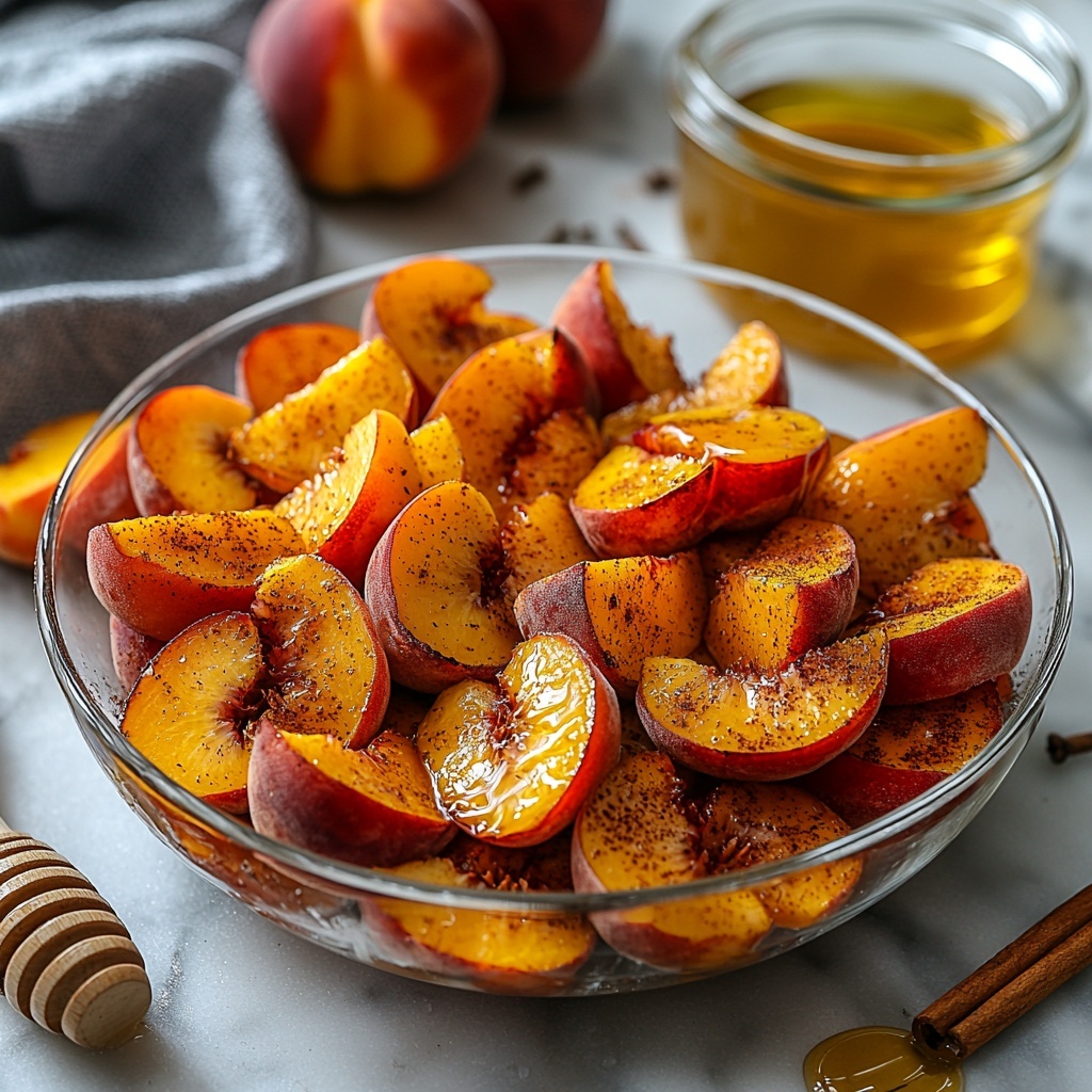 These ingredients are wonderfully simple but absolutely essential to create the perfect harmony of flavors and textures in this dish. Each element plays a vital role—peaches bring natural sweetness and juiciness, olive oil helps achieve a perfect grill with a lovely caramelized surface, cinnamon adds a comforting warmth, and honey provides that final sticky, sweet finish.