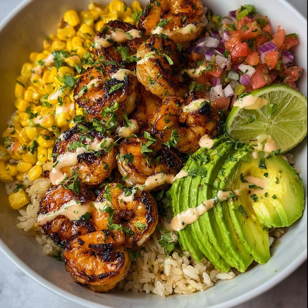 For a fun twist, serve the shrimp bowl in crispy tortilla bowls or lettuce cups. Another great idea is to spread the creamy lime sauce at the bottom of the bowl before layering ingredients on top, creating a rich flavor base that surprises with each bite.