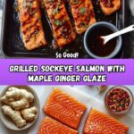 This Grilled Sockeye Salmon recipe features tender, flaky salmon fillets glazed with a vibrant maple ginger sauce. The sweet and tangy glaze, enhanced by balsamic vinegar, fresh ginger, garlic, and a hint of crushed red pepper flakes, perfectly complements the rich flavor of sockeye salmon. Grilled to perfection with crispy skin, this dish is quick to prepare and ideal for a healthy, flavorful dinner.