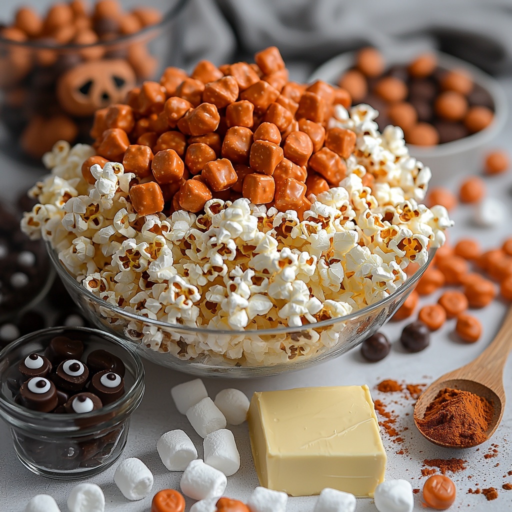 Gathering the right ingredients is the first secret to making these Halloween popcorn balls a total hit. Each component plays its part, from the buttery sweetness to the colorful, festive finish that makes these treats pop with personality.