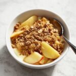 Place your dish in the oven and bake for 30-35 minutes, or until the topping is golden brown and the apples are bubbling gently. Your kitchen will soon be filled with comforting aromas that make waiting well worth it.