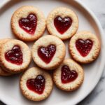 Delightfully sweet Heart Jam Cookies featuring a tender, buttery dough encasing a vibrant dollop of your favorite fruit jam. Perfect for gifting or a charming treat to share, these cookies combine simple ingredients for a classic yet irresistible dessert.