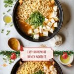 Top your bowl with classic garnishes like sliced green onions, a soft boiled egg, nori sheets, or bamboo shoots to boost flavor and add that authentic ramen experience.