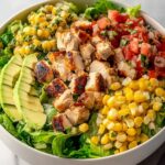 In a large bowl, combine the mixed salad greens with juicy halved cherry tomatoes, crisp cucumber slices, creamy avocado, and the red onion’s subtle zing. This mix is the crunchy, flavorful bed where your chicken will shine.