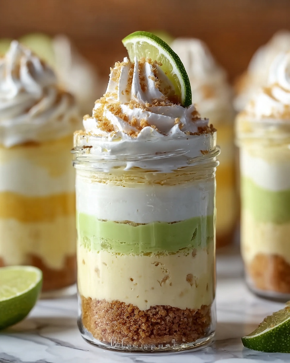 Simple garnishes can elevate your Key Lime Pie Jars from charming to unforgettable. Fresh lime zest adds brightness and color, while a tiny slice of lime on the rim signals the fresh citrus essence inside. For texture lovers, a sprinkle of extra graham cracker crumbs introduces a pleasant crunch with every bite.