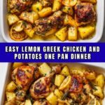 This Lemon Greek Chicken and Potatoes recipe features succulent bone-in, skin-on chicken thighs paired with tender, lemony potato wedges, all roasted together in one pan for a flavorful and hassle-free Mediterranean meal. Infused with garlic, oregano, thyme, and fresh lemon juice, it’s a perfect balance of citrusy brightness and savory herbs that delivers a hearty yet light dinner option.