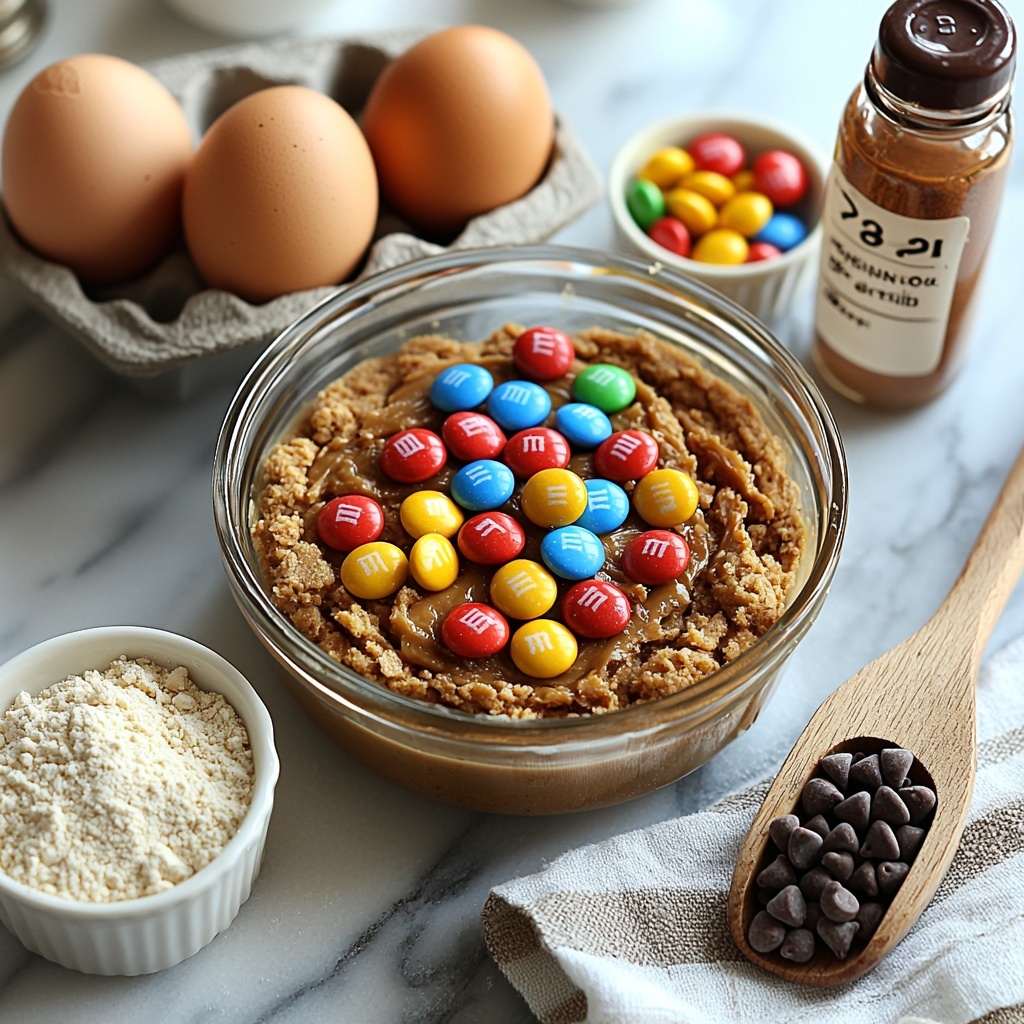 These ingredients are simple, straightforward, and come together beautifully to create the perfect balance of flavor, texture, and that gorgeous pop of color. Each element plays a key role, from the creamy peanut butter that forms the heart of the dough to the vibrant M&Ms that add a playful crunch.
