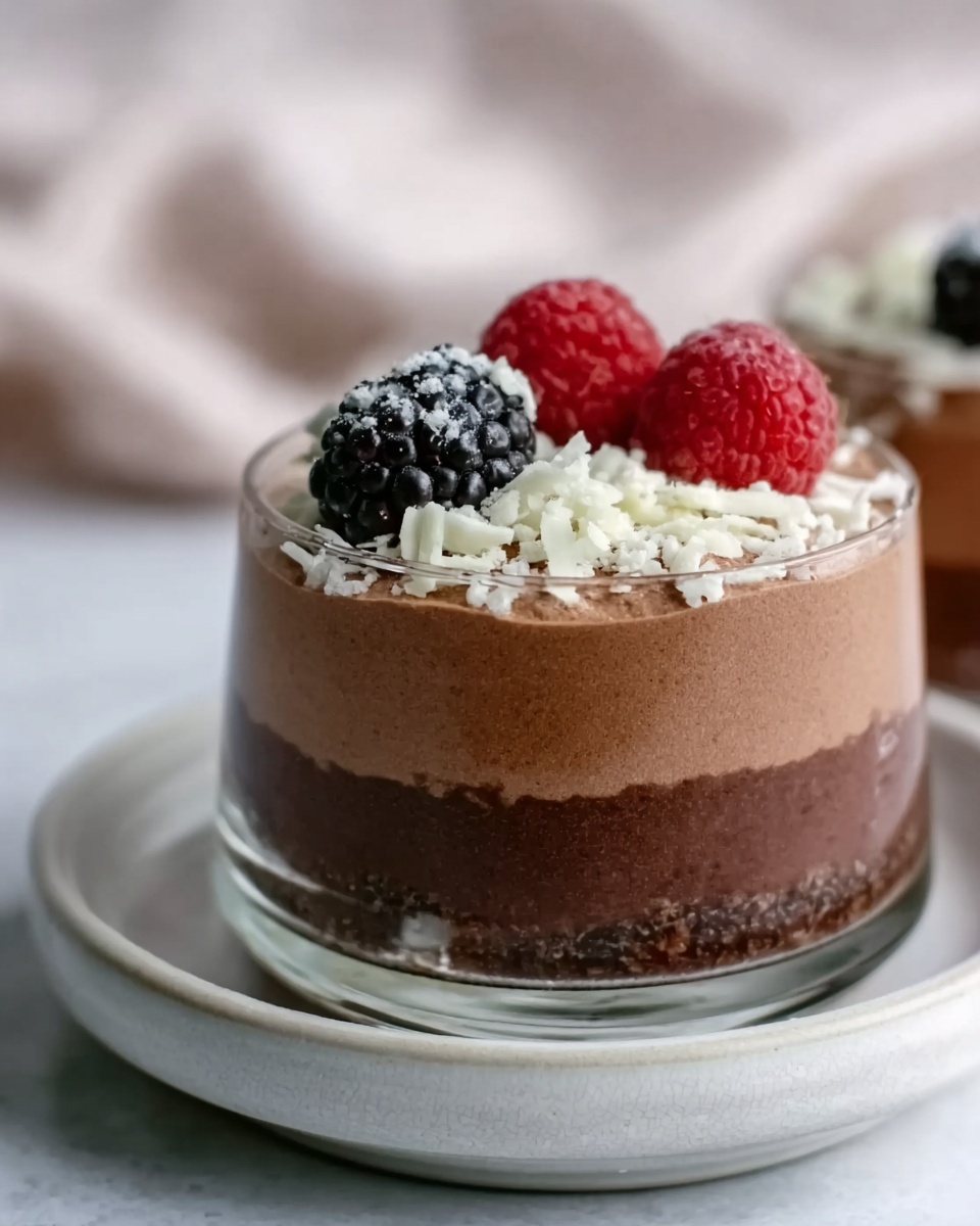 7. Garnish and Serve: Before serving, garnish the mousse with optional toppings such as whipped cream, chocolate shavings, cocoa powder, or fresh berries for added flavor and decoration.